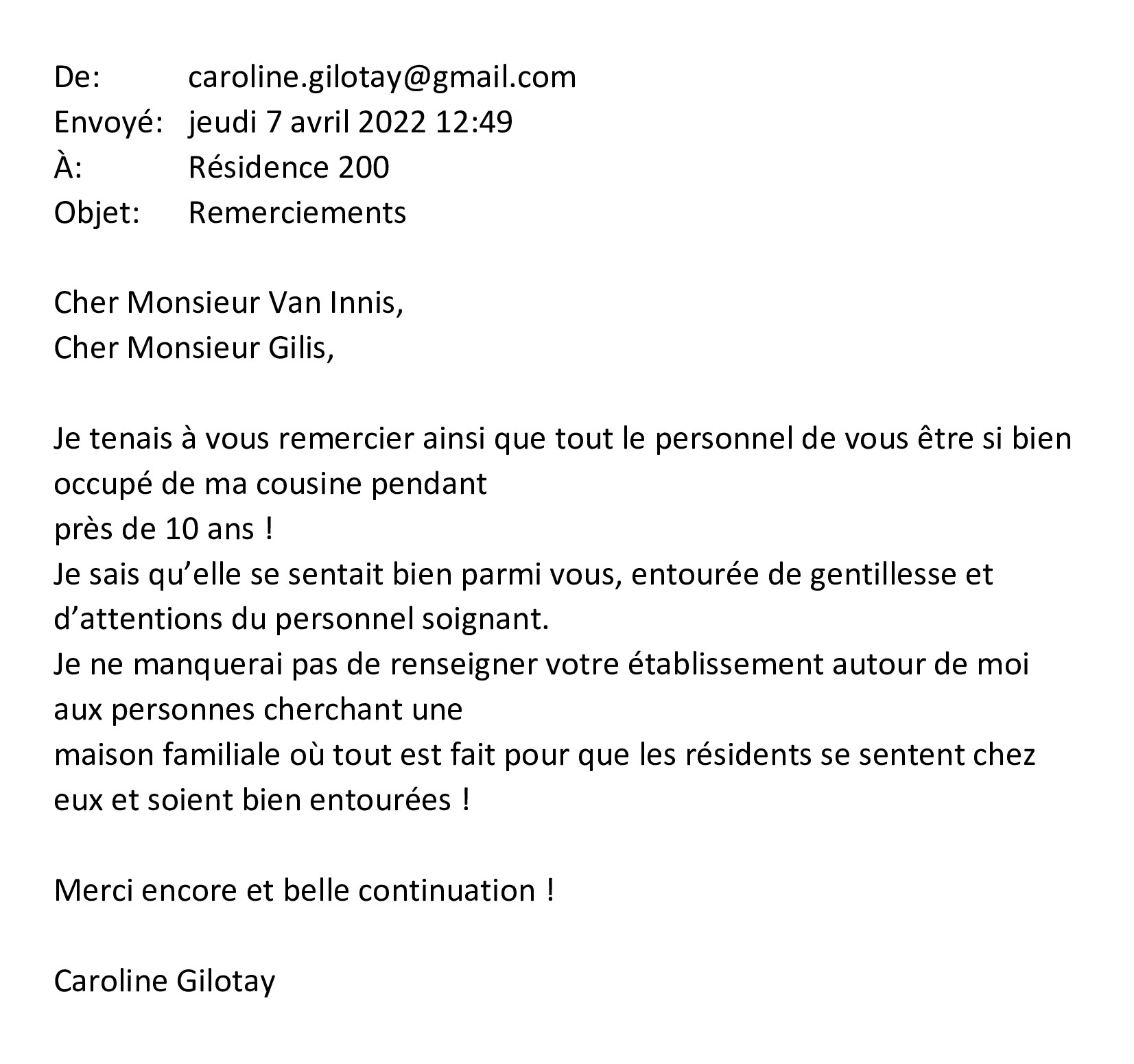 Résidence 200 est une maison de repos située à Ixelles, dans l’un des plus beaux quartiers de Bruxelles. Notre philosophie est de proposer de l’aide aux personnes âgées afin qu’elles puissent garder un maximum d’autonomie : Nous vous aidons à rester libres !